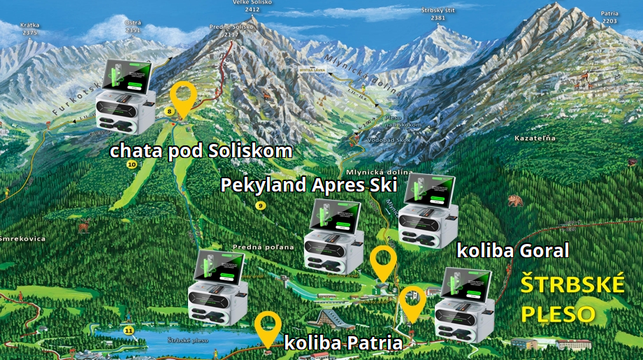 automaty sú umiestnené na najlepších miestach na Slovensku *bez nájomného*.